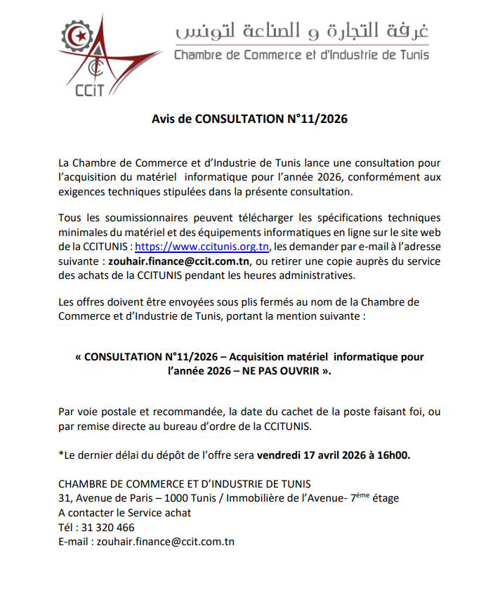 Nouvelle adhésion à la CCITunis pour l’année 2024